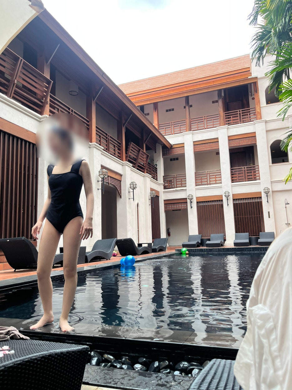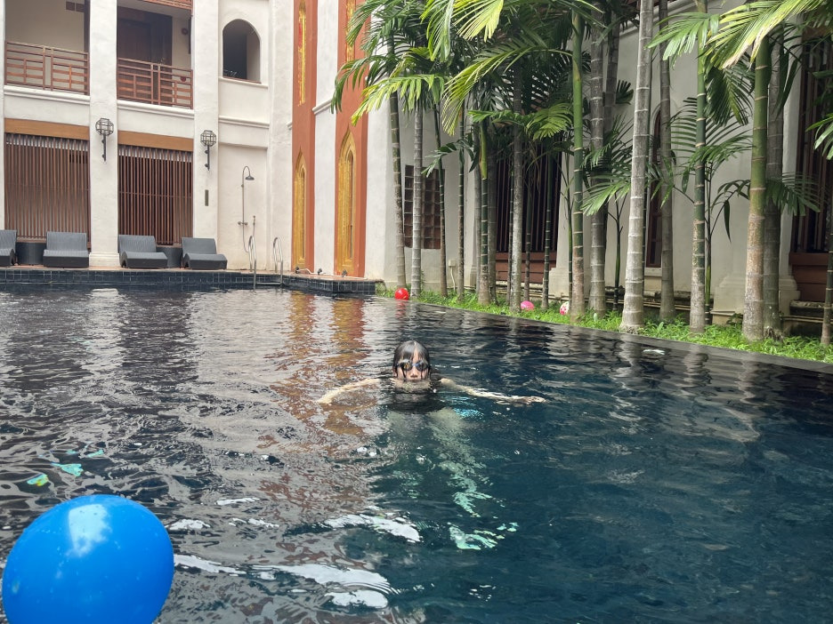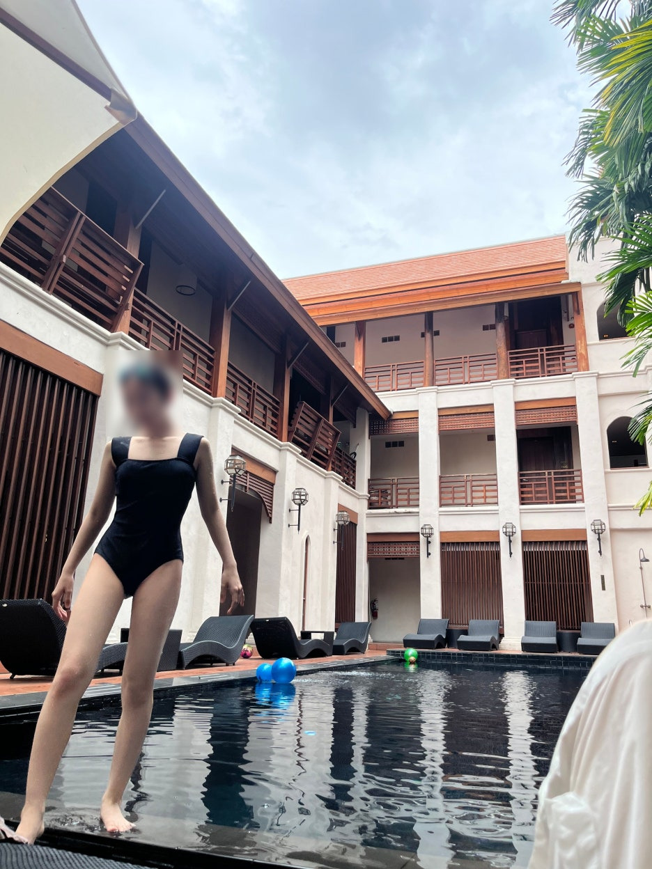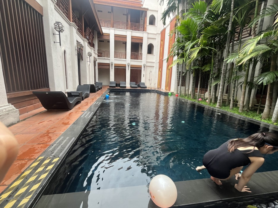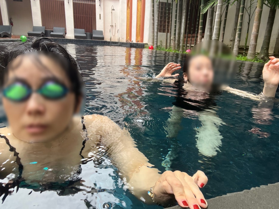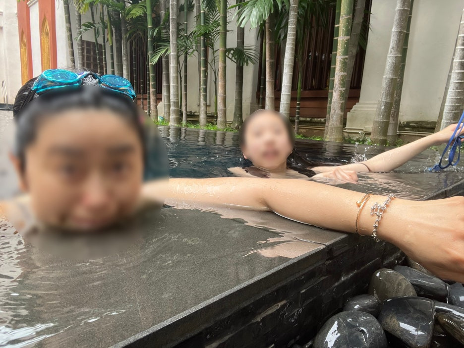 돌아와서 바로 수영장.