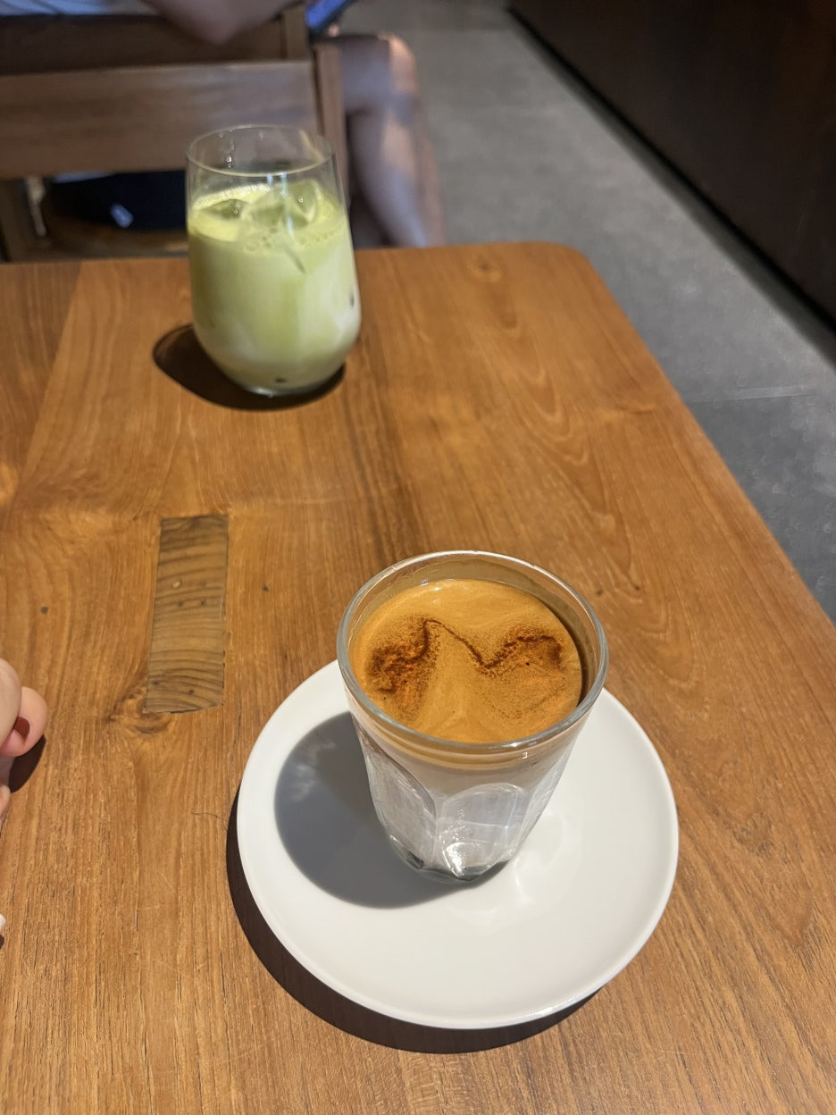 점원이 보채지 않고 커피와 마차를 먼저 주고 한참을 기다려 줬어요.